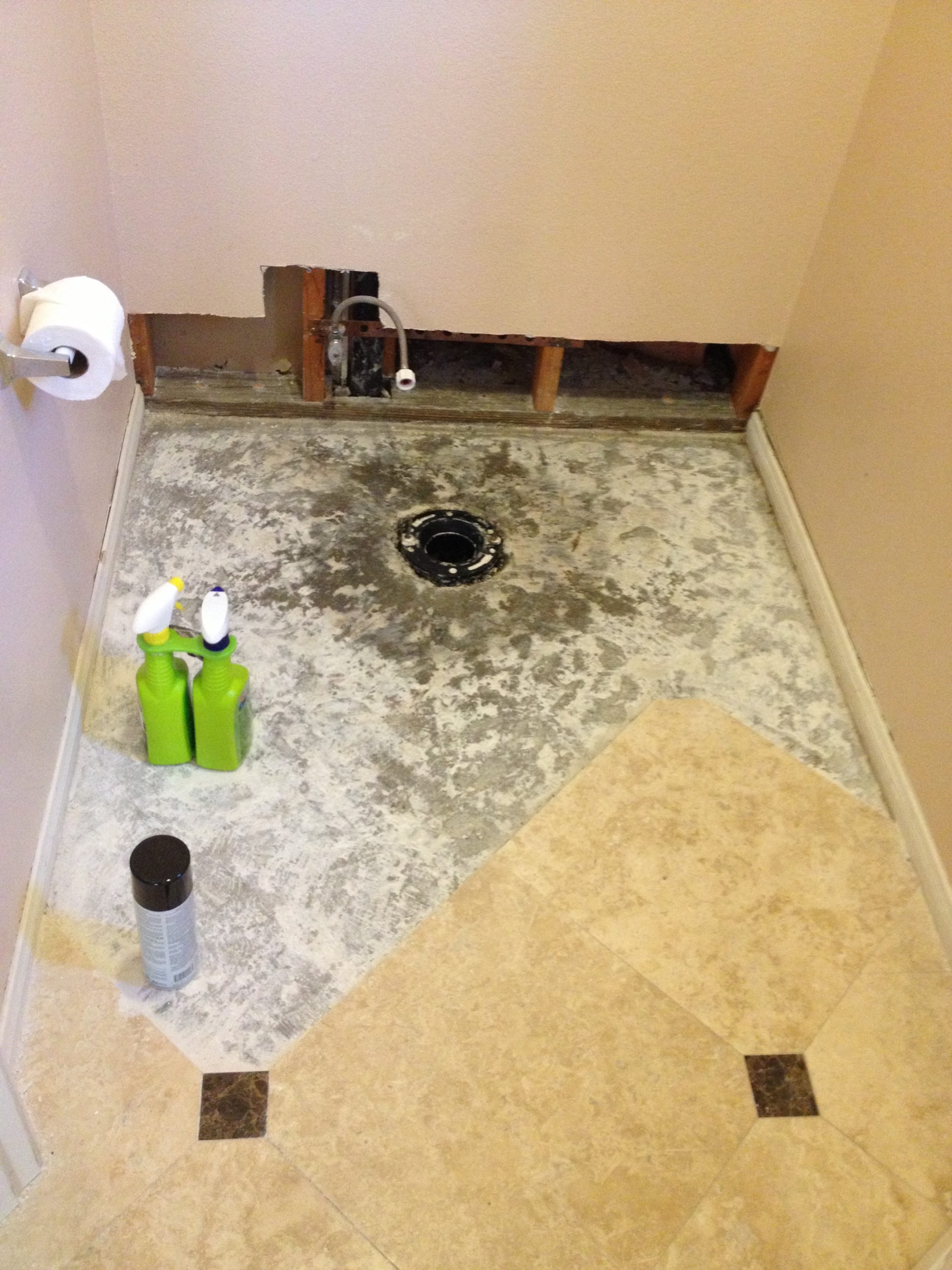 • Removed and replaced partitions, tiles, and bathroom fixtures